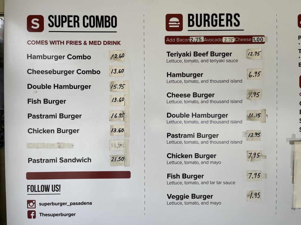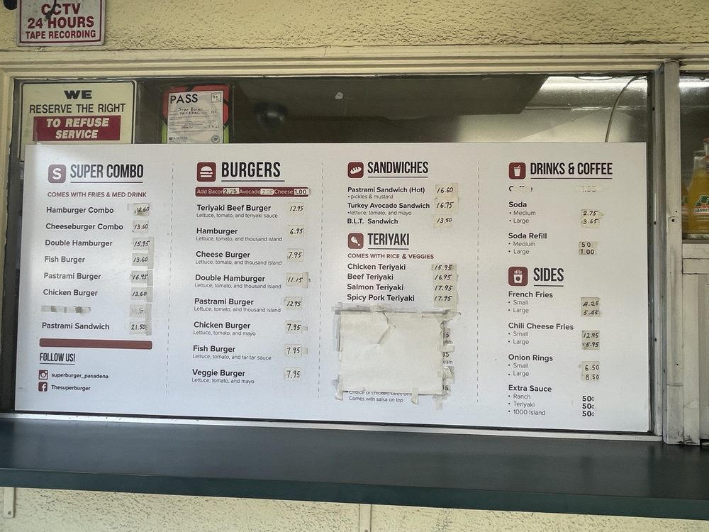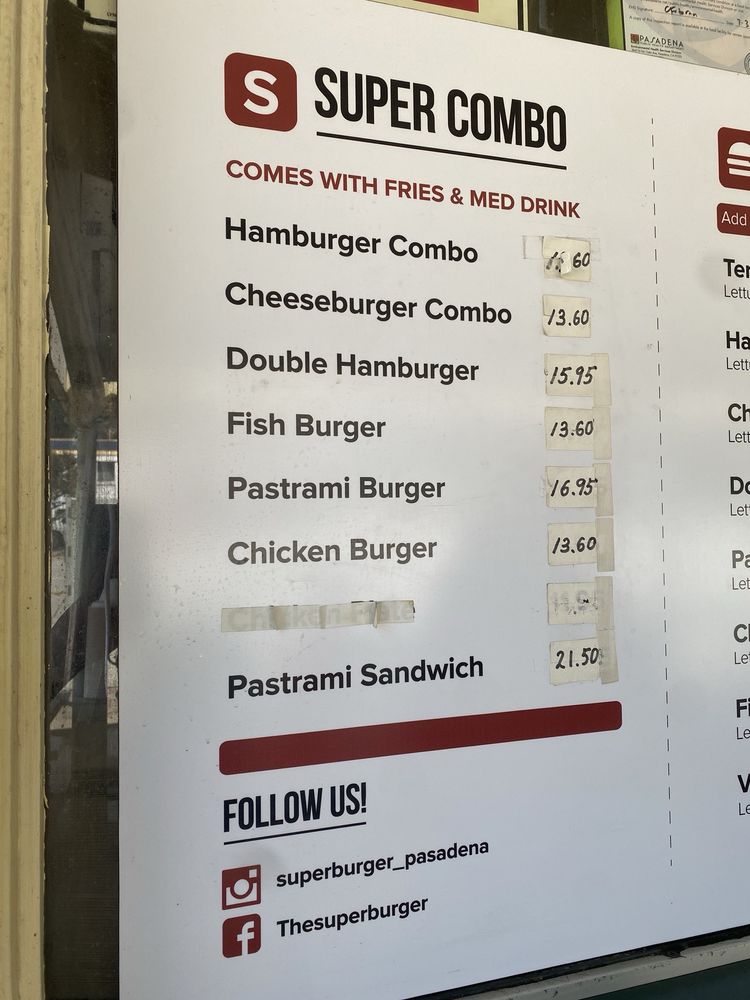 Introducing Super Burger, a burger joint located at 458 N Altadena Dr in Pasadena, CA. This casual eatery offers a variety of options for both meat lovers and vegetarians, with thick and juicy patties cooked to perfection. Customers rave about the flavorful burgers, fresh ingredients, and generous portion sizes. The menu also features tasty sides like onion rings and seasoned crinkle-cut fries. The friendly staff and welcoming atmosphere make dining at Super Burger a delightful experience. With convenient amenities such as delivery, takeout, and outdoor seating, this spot is perfect for groups, families, or a quick lunch. Don't miss out on trying the cheeseburger combo with all the fixings, paired with crispy onion rings or hot fries. Super Burger truly delivers on taste, quality, and service, making it a must-try destination for burger enthusiasts.